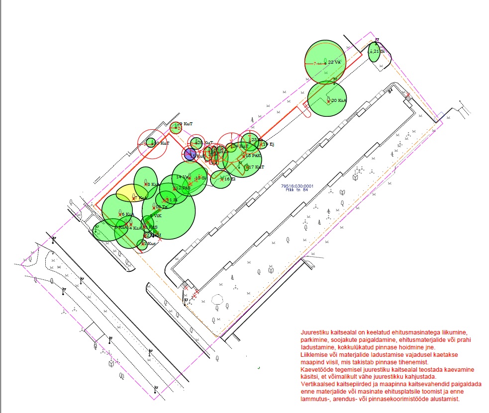 - Juurestiku kaitseala: Igal puul on arvutuslik kaitsetsoon (tavaliselt 12x rinnasdiameeter), kus kaevetööd on keelatud või lubatud vaid käsitsi.