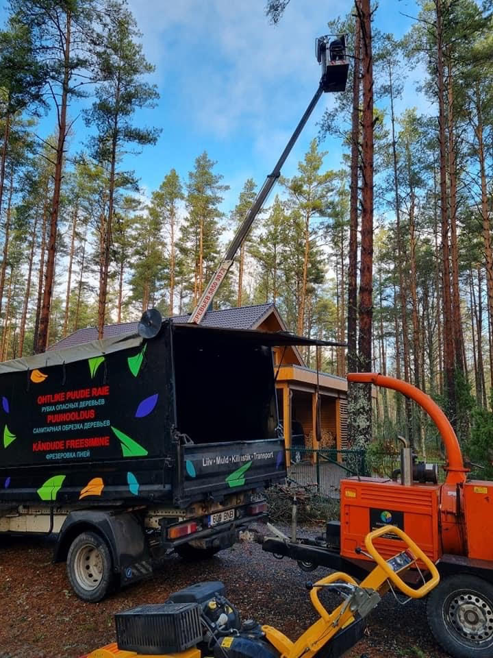 Töö operatiivseks teostamiseks on vajalik kaasaegne ja hooldatud tehnika. Meile on kriitiliselt oluline Sinu jäätmekäitluse võimekus – võimas oksahakkur ja transpordivõimalus (haagis/veok) on hädavajalikud. Samuti eeldame vastavate lubade olemasolu (nt BE-kategooria haagise veoks, C-kategooria või tõstukijuhi luba), et tagada sujuv logistika objektile ja sealt ära.
